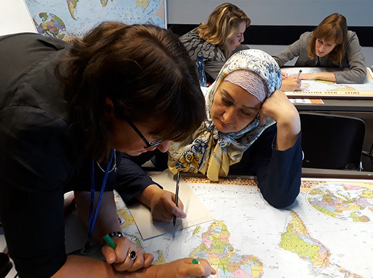 Professores e educadores receberam dicas práticas sobre como conduzir workshops e aulas, incluindo em disciplinas curriculares como: geografia, educação física e artes, em grupos constituídos por pessoas (alunos, formandos) com histórico de migração.
